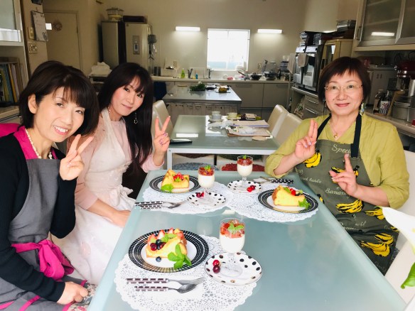 💟 お菓子教室 💟 2019.6.11 投稿日: 2019/09/27 投稿者: こやまえいこ 返信 本日お越しくださったのは、『チーム スィーツ』のみなさん。 何度か作っているシフォンケーキですが、またお味の違うものを作ってみました。 そして初夏に相応しい冷たいデザートも、粉ゼラチンを使ったゼリーを。 『オレンジ🍊のシフォンケーキ』 〜フルーツサンドにして〜 『ミルクティーゼリー』 『お持ち帰り用 ゼリー』 そして、来て下さったチームスィーツのみなさん💕 お疲れ様でした❣️ このクラスの方は、復習が大好きな方達❤️ また、みなさんに喜んでいただけるよう、頑張って作ってくださいね〜😊👍